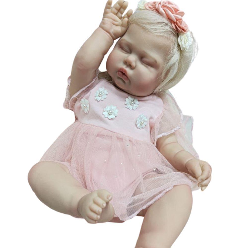 Bebê Reborn Menina Dormindo Cabelo Implantado Fio A Fio Super Realista
