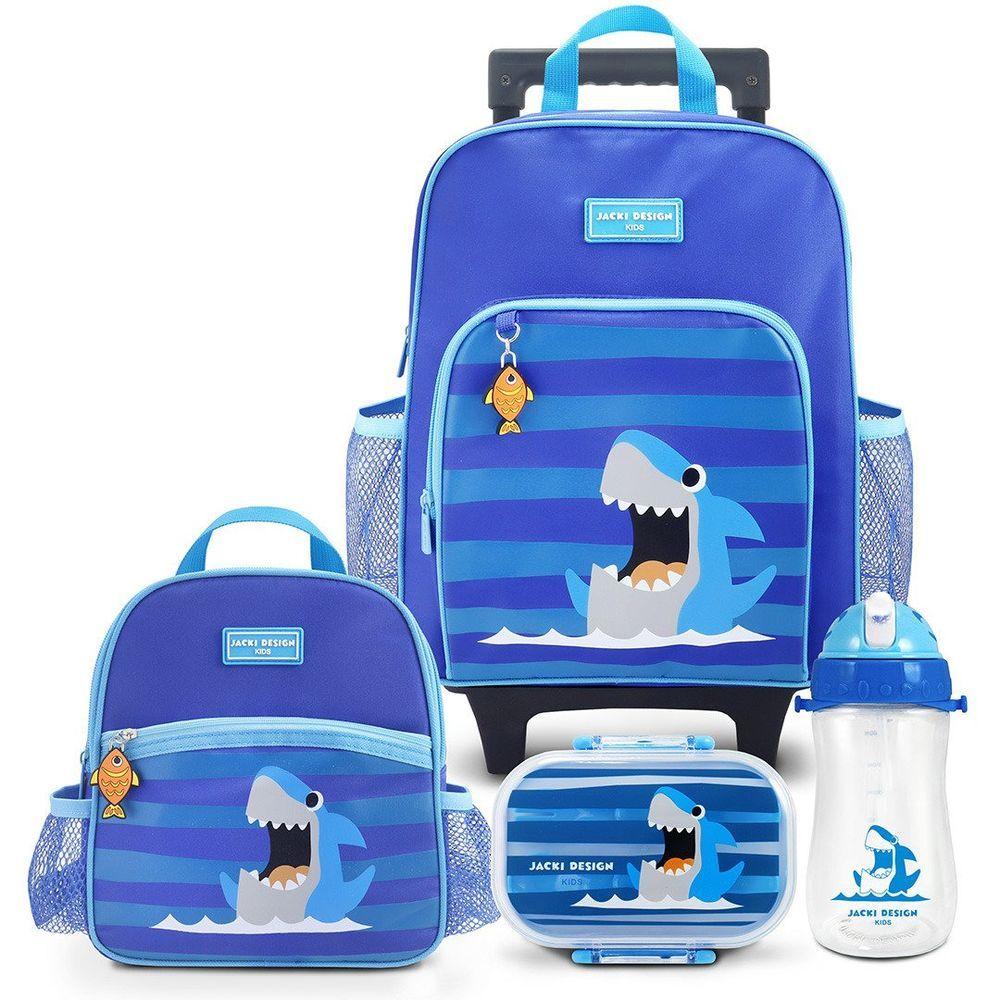Conjunto De Mochila De Rodinha, Lancheira Térmica, Pote E Garrafa Pimpolhos Azul