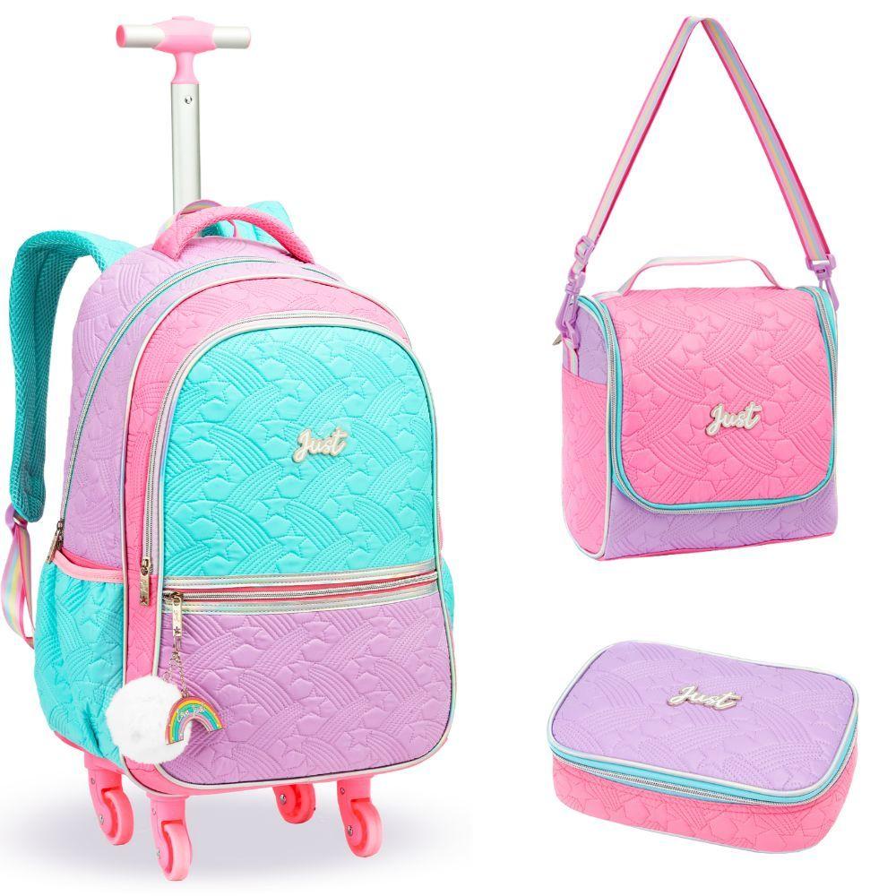 Kit Mochila De Rodinhas + Lancheira Térmica + Estojo Box Love Just Estrelas Denlex Colorido