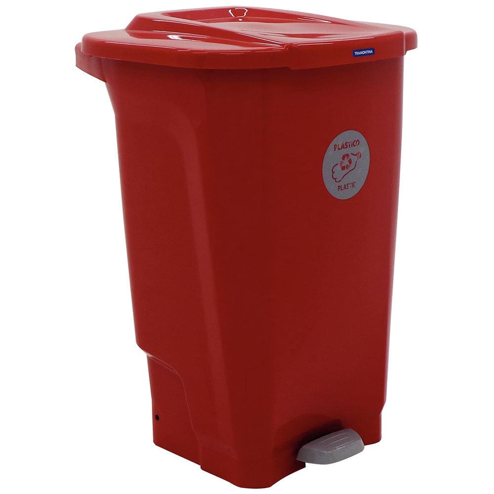 Lixeira para Coleta Seletiva com Pedal Tramontina T-Force em Polipropileno Vermelho - 100 L