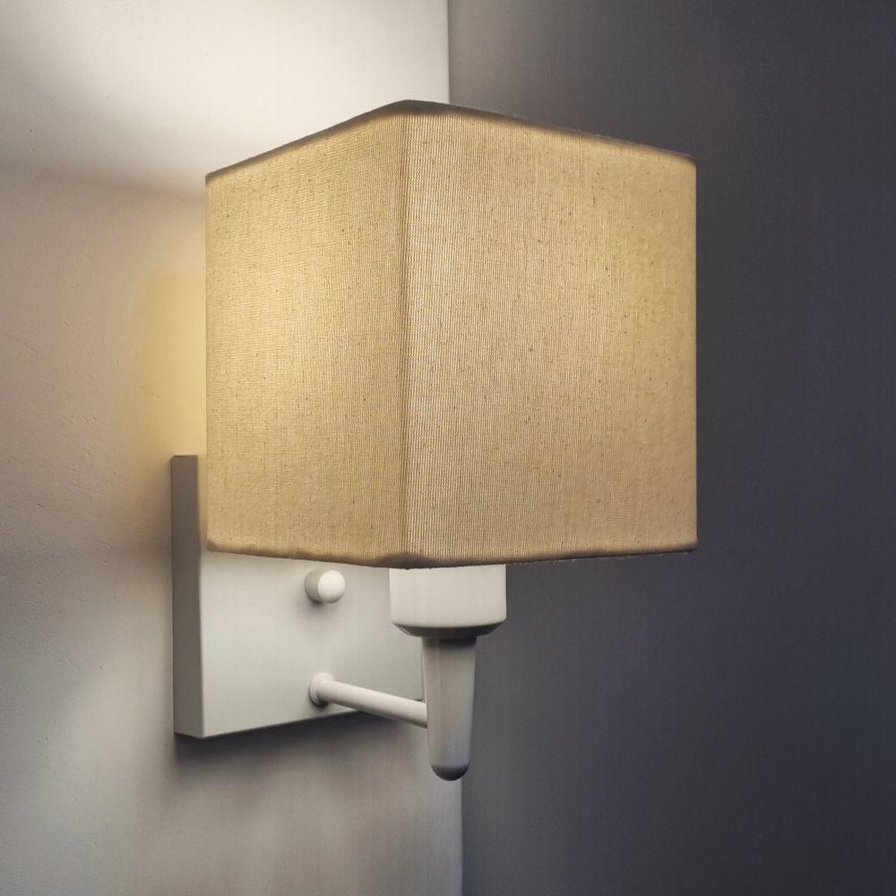 Arandela Quadrada Vivare Md-2006 Base Branco Cúpula Em Tecido - Bivolt Branco-linho-bege 127-220v
