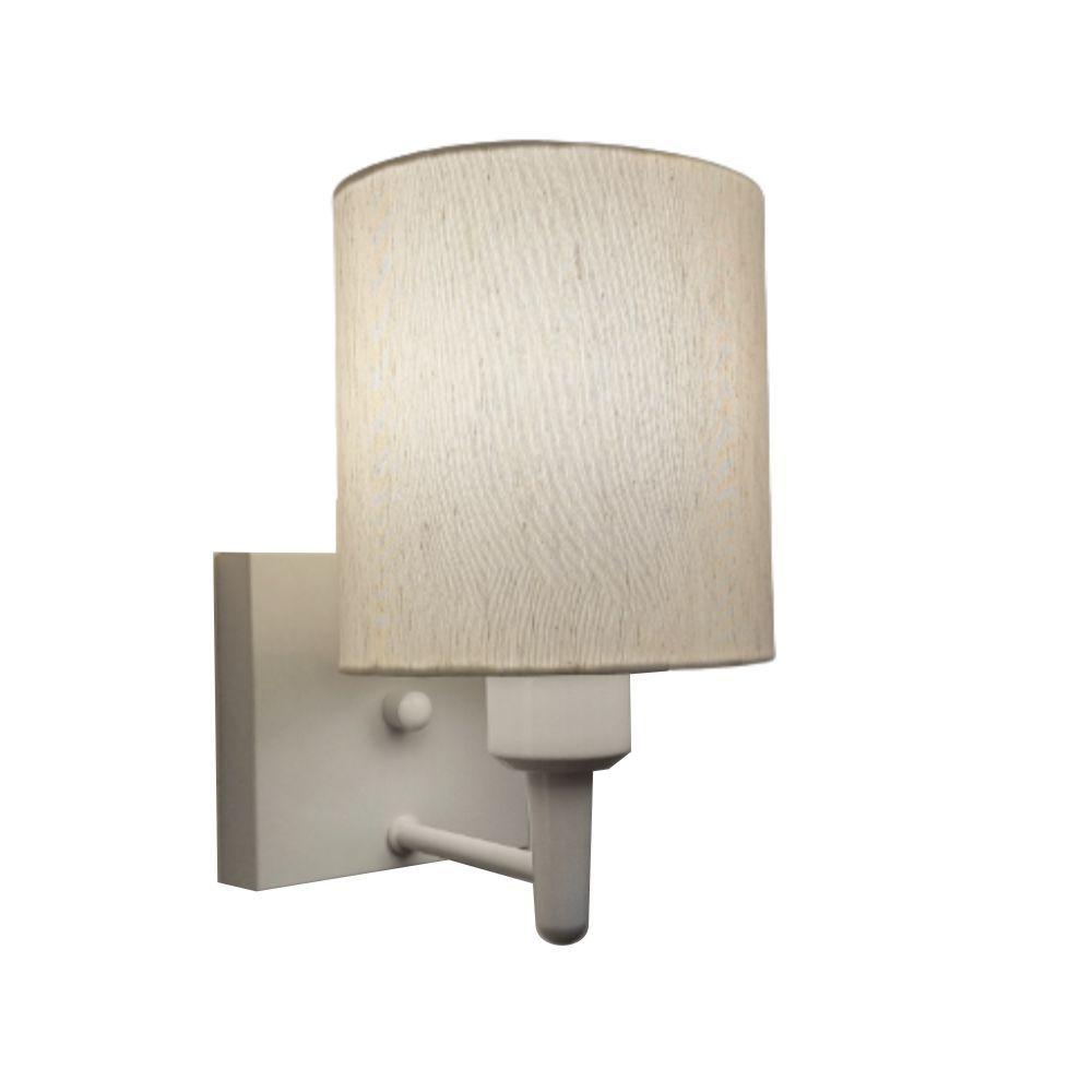 Arandela Quadrada Md-2033 Branco Cúpula Em Tecido Cilíndrica Linho Bege - Bivolt