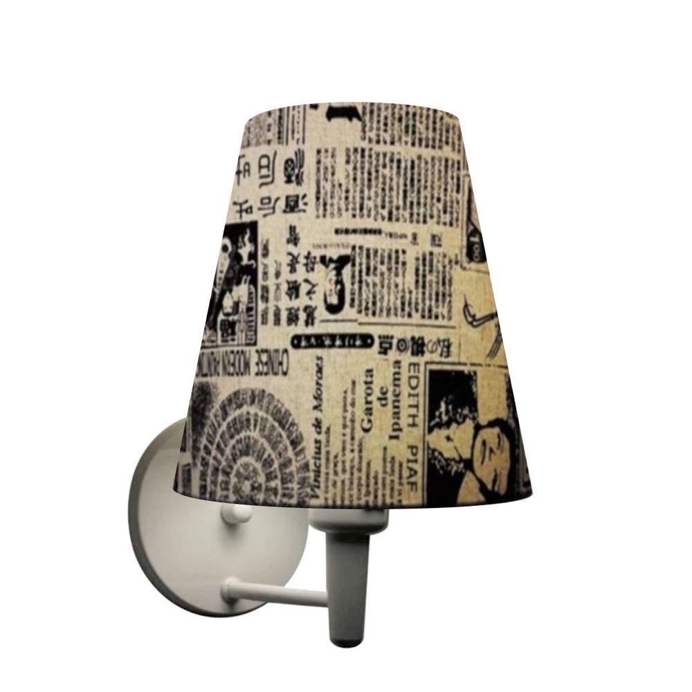 Arandela Cone Md-2007 Base Branco Cúpula Em Tecido 20-08x18cm Ny-jornal - Bivolt