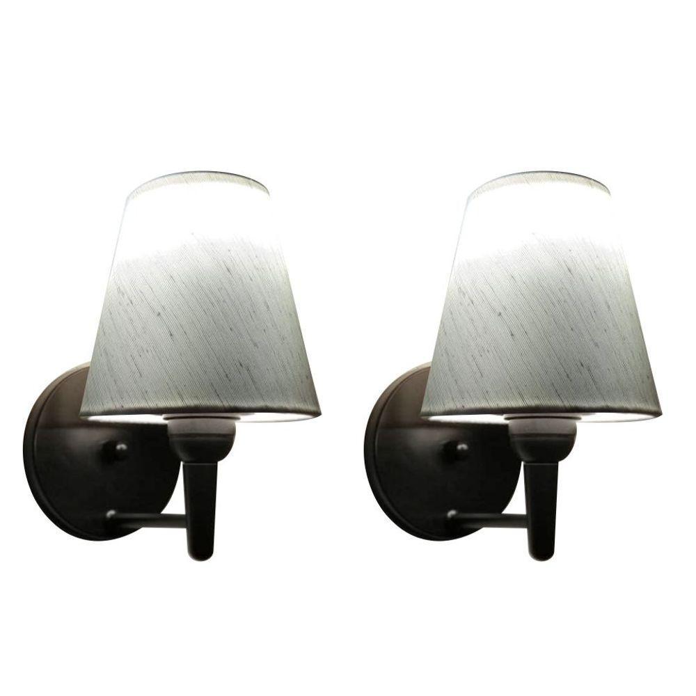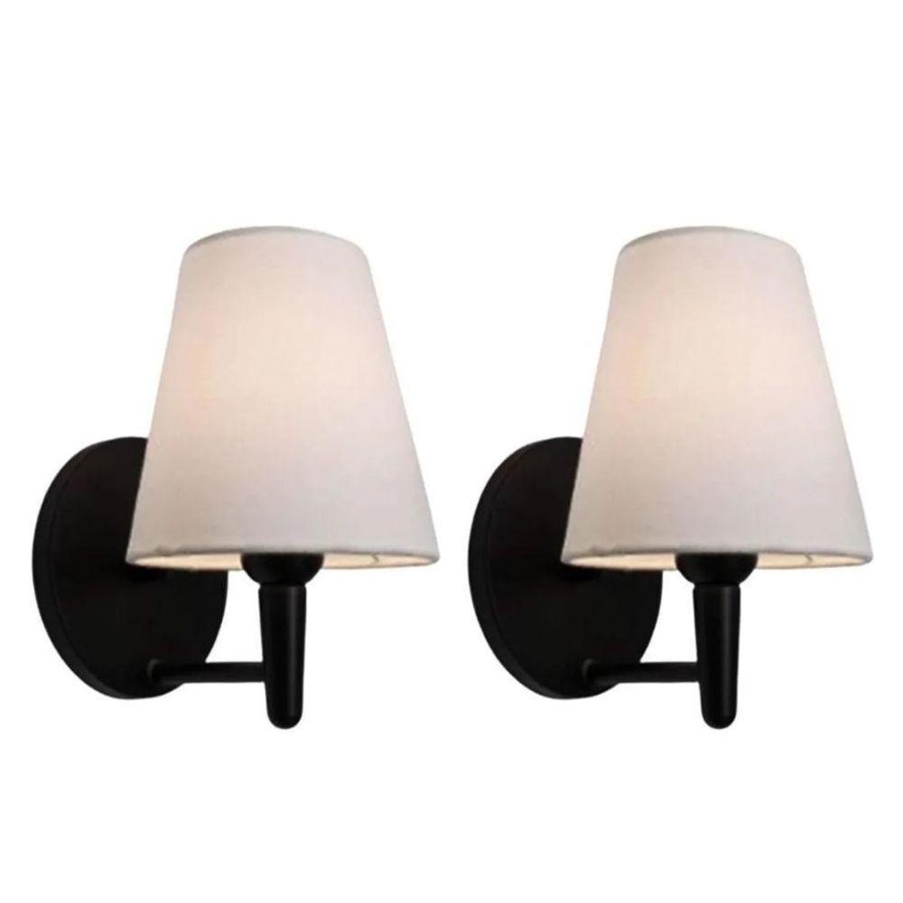 Kit-2 Arandela Cone Md-2004 Base Preto Cúpula Em Tecido 14-14x07cm Branco - Bivolt