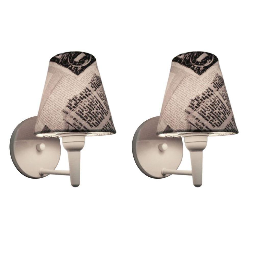 Kit-2 Arandela Cone Md-2004 Base Branco Cúpula Em Tecido 14-14x07cm Ny-jornal - Bivolt