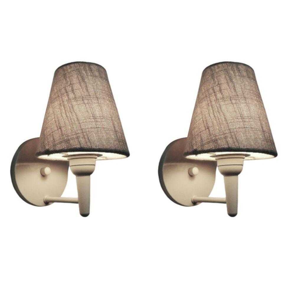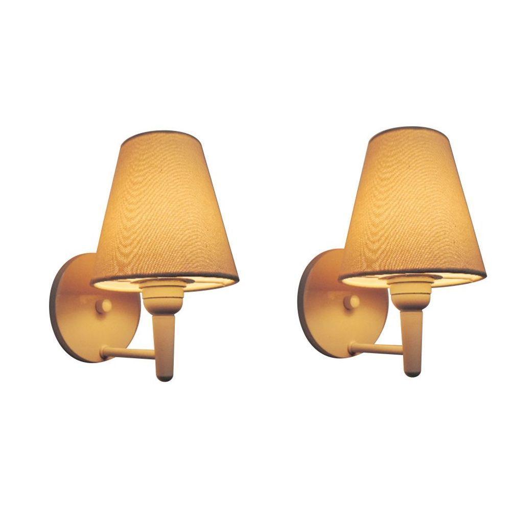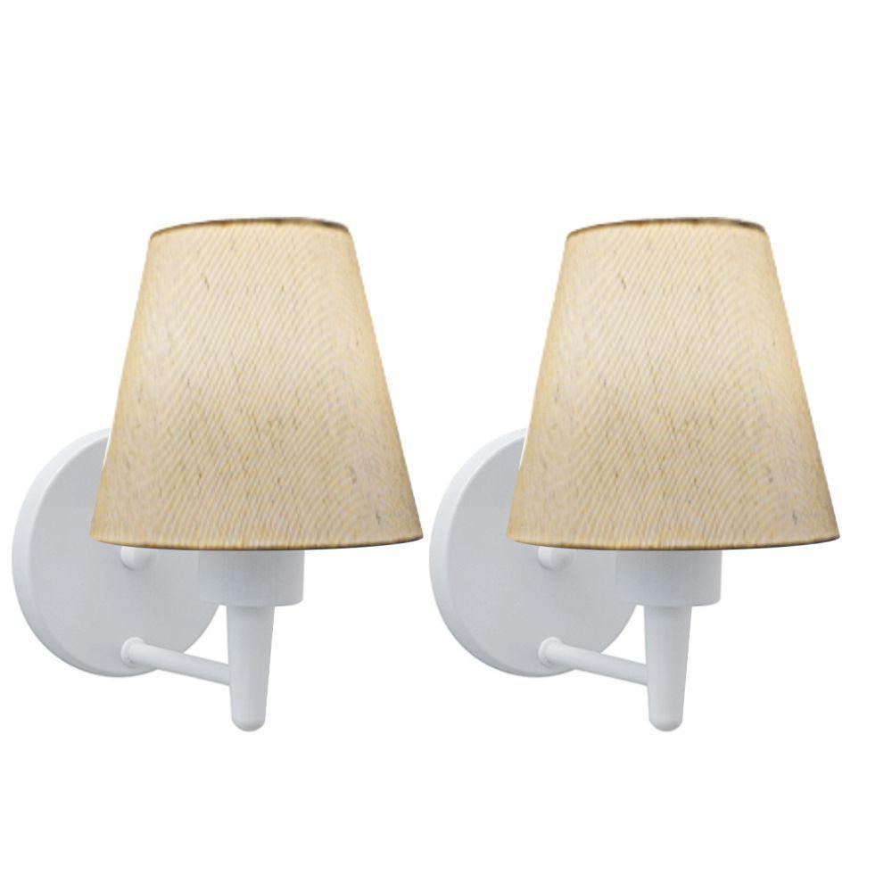 Kit-2 Arandela Cone Md-2004 Base Branco Cúpula Em Tecido 14-14x07cm Rustico Bege - Bivolt