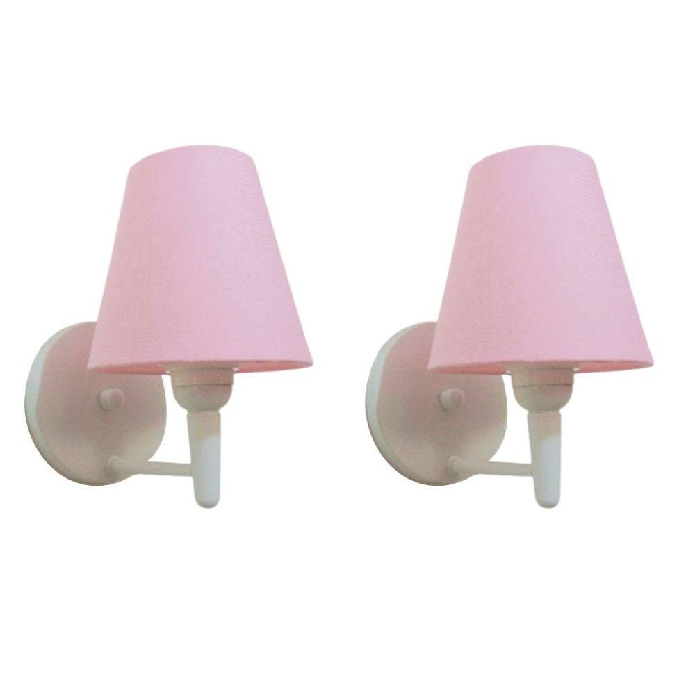 Kit-2 Arandela Cone Md-2004 Base Branco Cúpula Em Tecido 14-14x07cm Rosa Tela - Bivolt