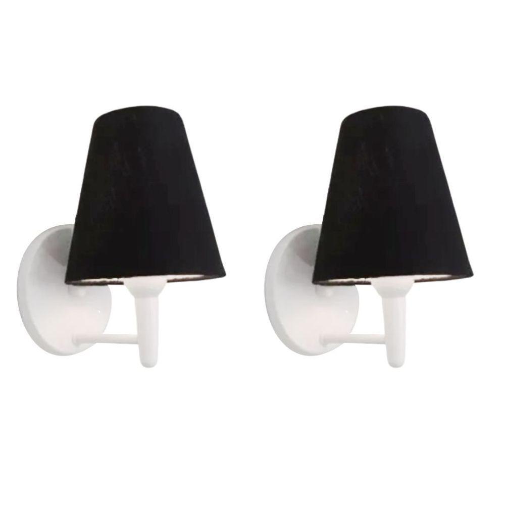 Kit-2 Arandela Cone Md-2004 Base Branco Cúpula Em Tecido 14-14x07cm Preto - Bivolt