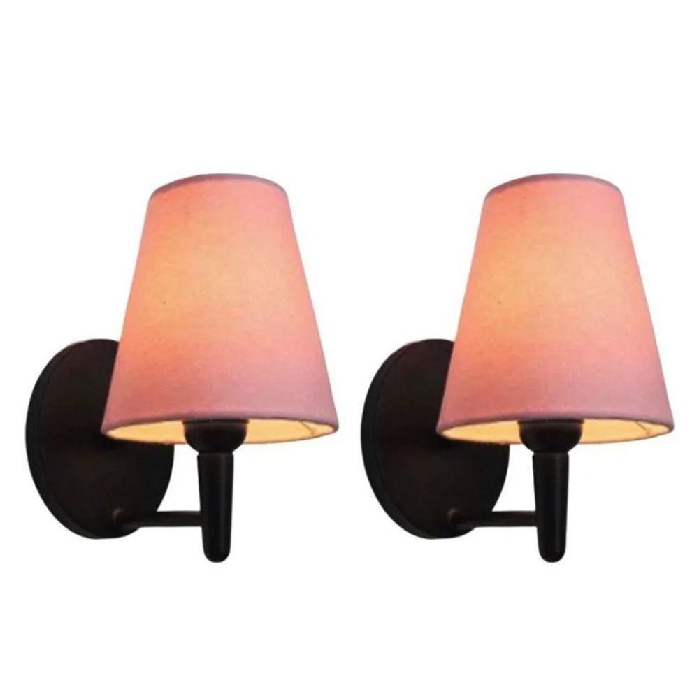 Kit-2 Arandela Cone Md-2004 Base Preto Cúpula Em Tecido 14-14x07cm Rosa Tela - Bivolt