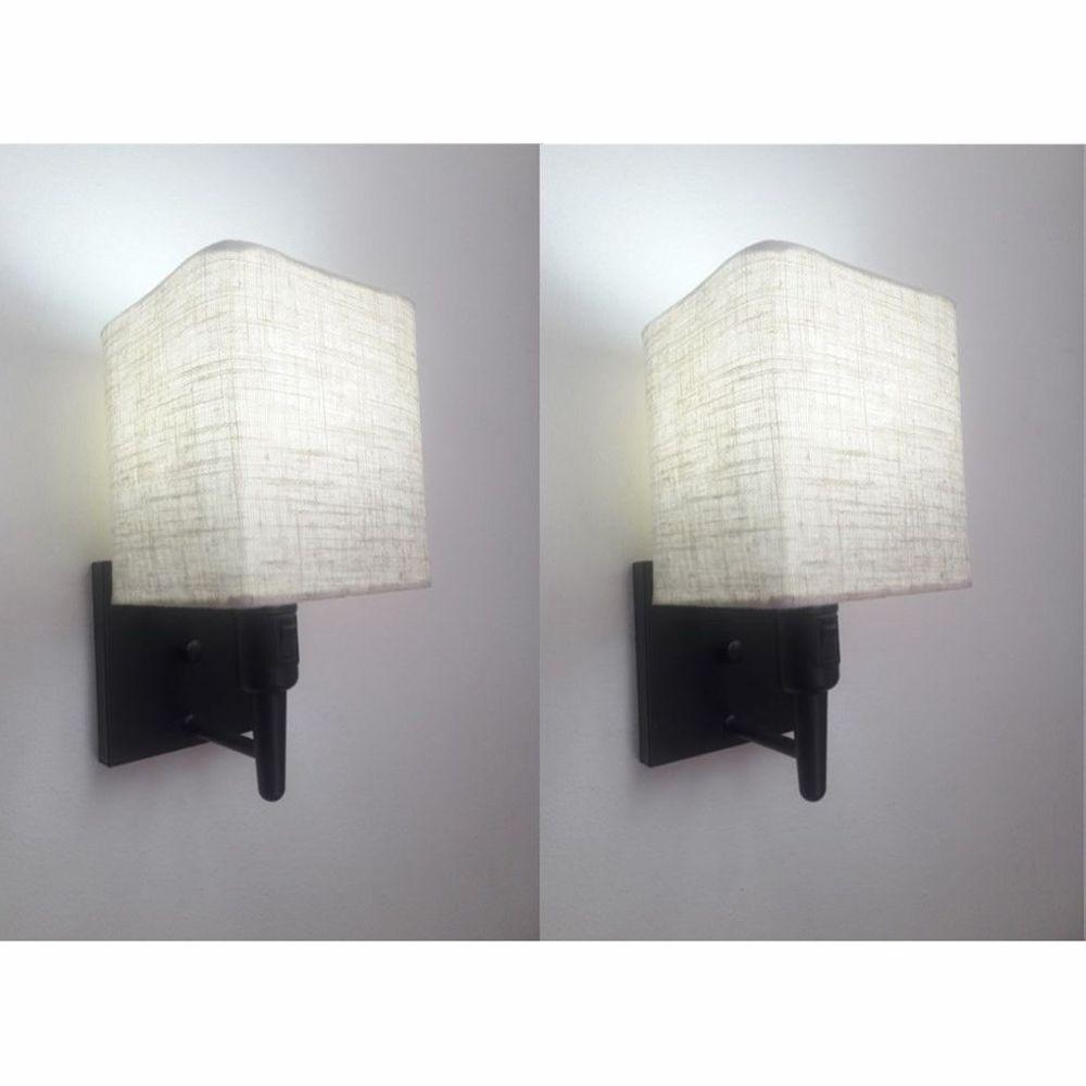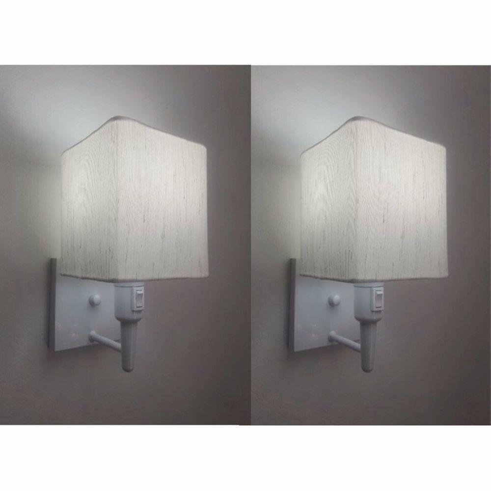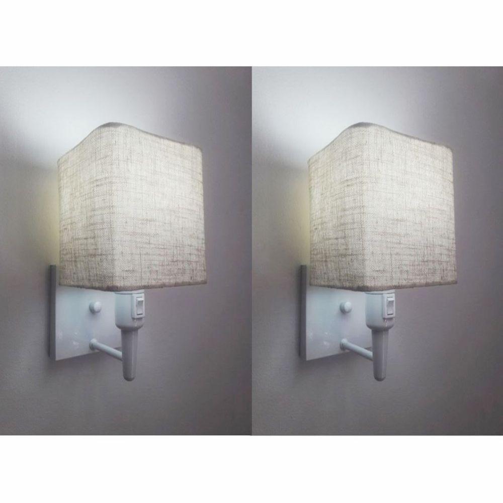 Kit-2 Arandela Quadrada Md-2019 Branco C- Inter Liga E Desl Cúpula Em Tecido Linho Bege - Bivolt