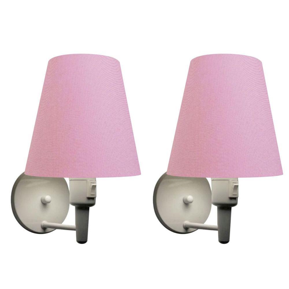Kit-2 Arandela Cone Md-2013 Branco C- Inter Liga E Desl Cúpula Em Tecido Rosa Bebê - Bivolt