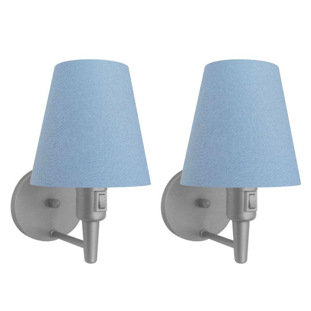 Kit-2 Arandela Cone Md-2013 Cinza C- Inter Liga E Desl Cúpula Em Tecido Azul Bebê - Bivolt