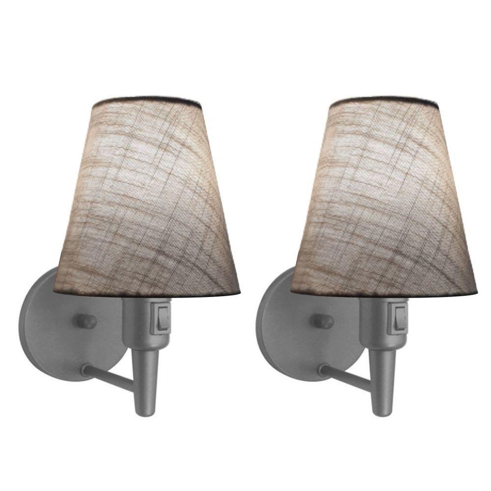 Kit-2 Arandela Cone Md-2013 Cinza C- Inter Liga E Desl Cúpula Em Tecido Rustico Bege - Bivolt