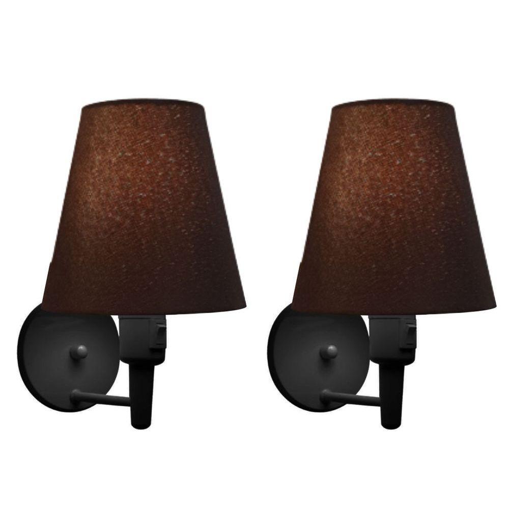 Kit-2 Arandela Cone Md-2013 Preto C- Inter Liga E Desl Cúpula Em Tecido Café - Bivolt