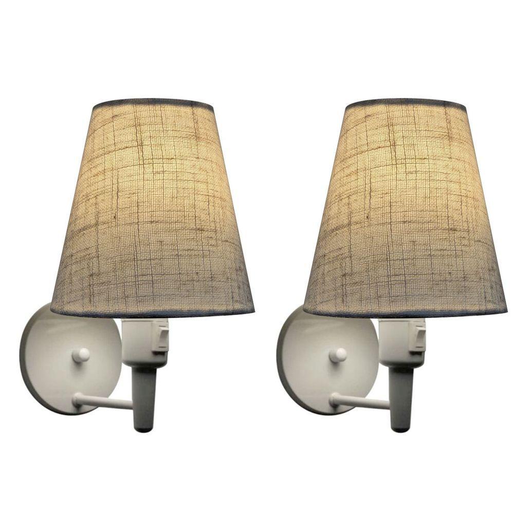 Kit-2 Arandela Cone Md-2013 Branco C- Inter Liga E Desl Cúpula Em Tecido Algodão Crú - Bivolt