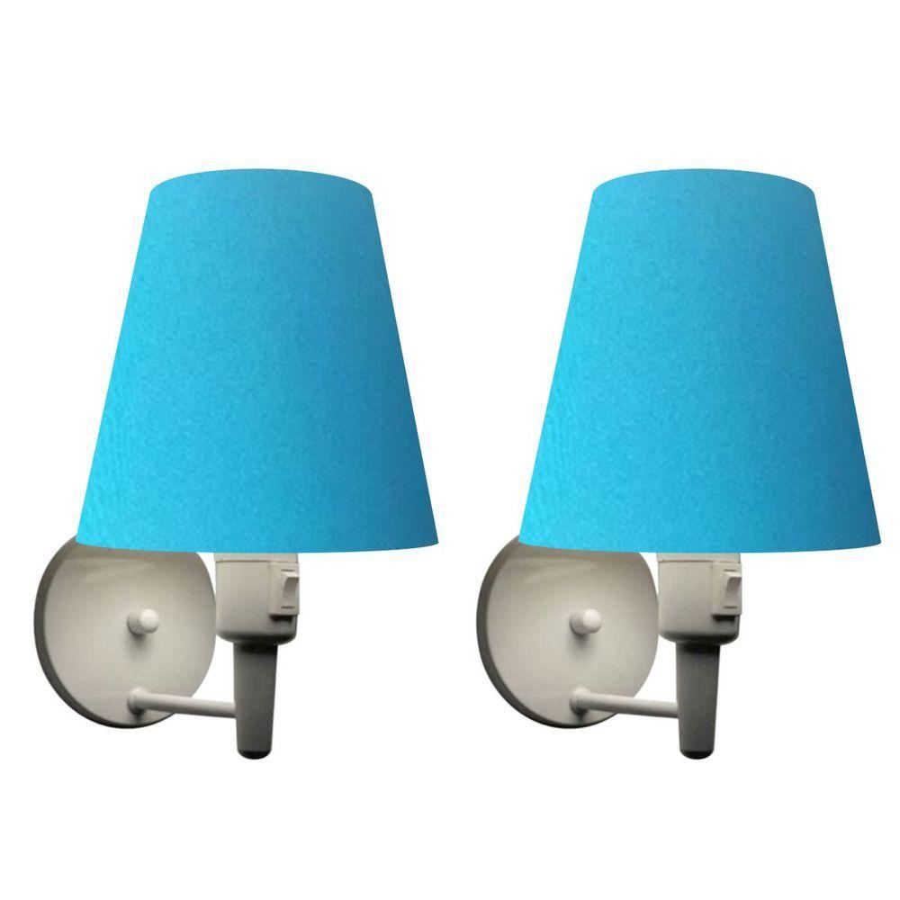 Kit-2 Arandela Cone Md-2013 Branco C- Inter Liga E Desl Cúpula Em Tecido Azul Turquesa - Bivolt