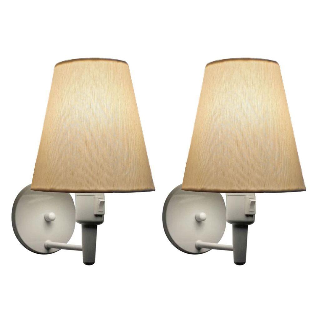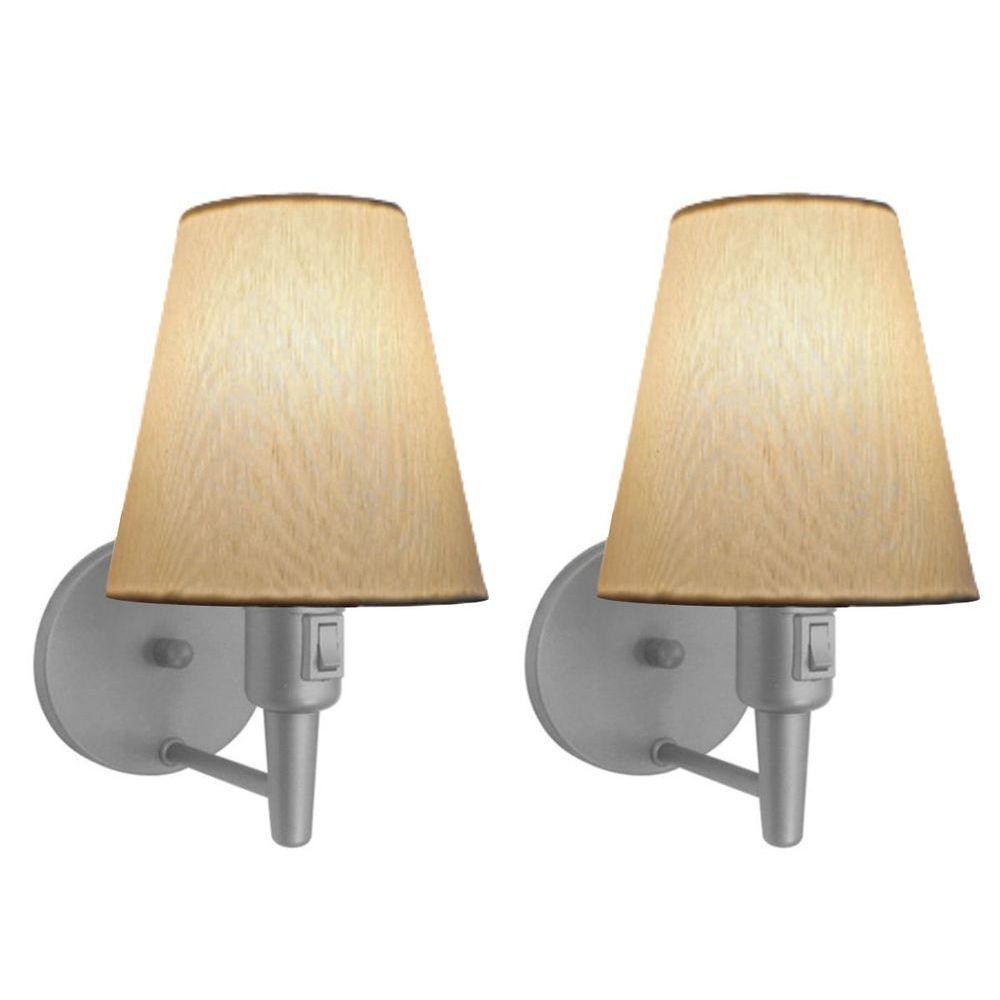 Kit-2 Arandela Cone Md-2013 Branco C- Inter Liga E Desl Cúpula Em Tecido Rustico Bege - Bivolt