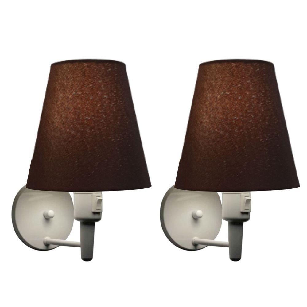 Kit-2 Arandela Cone Md-2013 Branco C- Inter Liga E Desl Cúpula Em Tecido Café - Bivolt