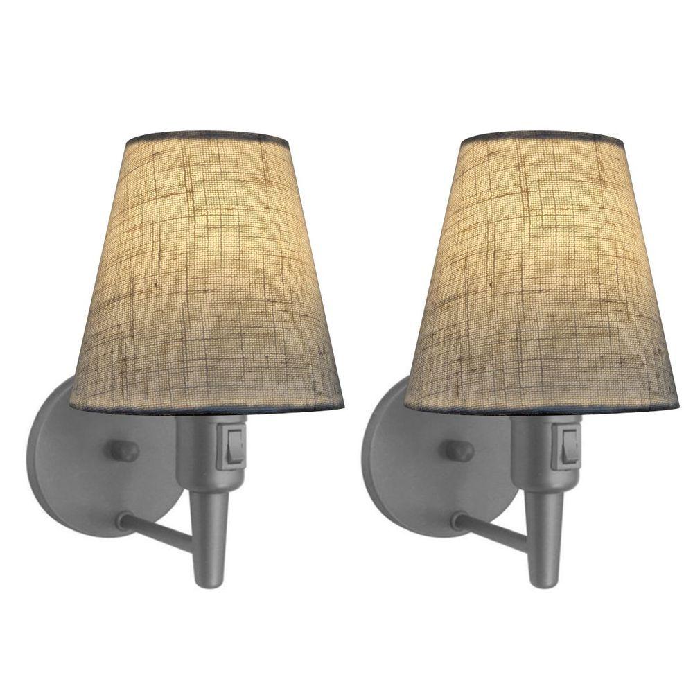 Kit-2 Arandela Cone Md-2013 Cinza C- Inter Liga E Desl Cúpula Em Tecido Algodão Crú - Bivolt