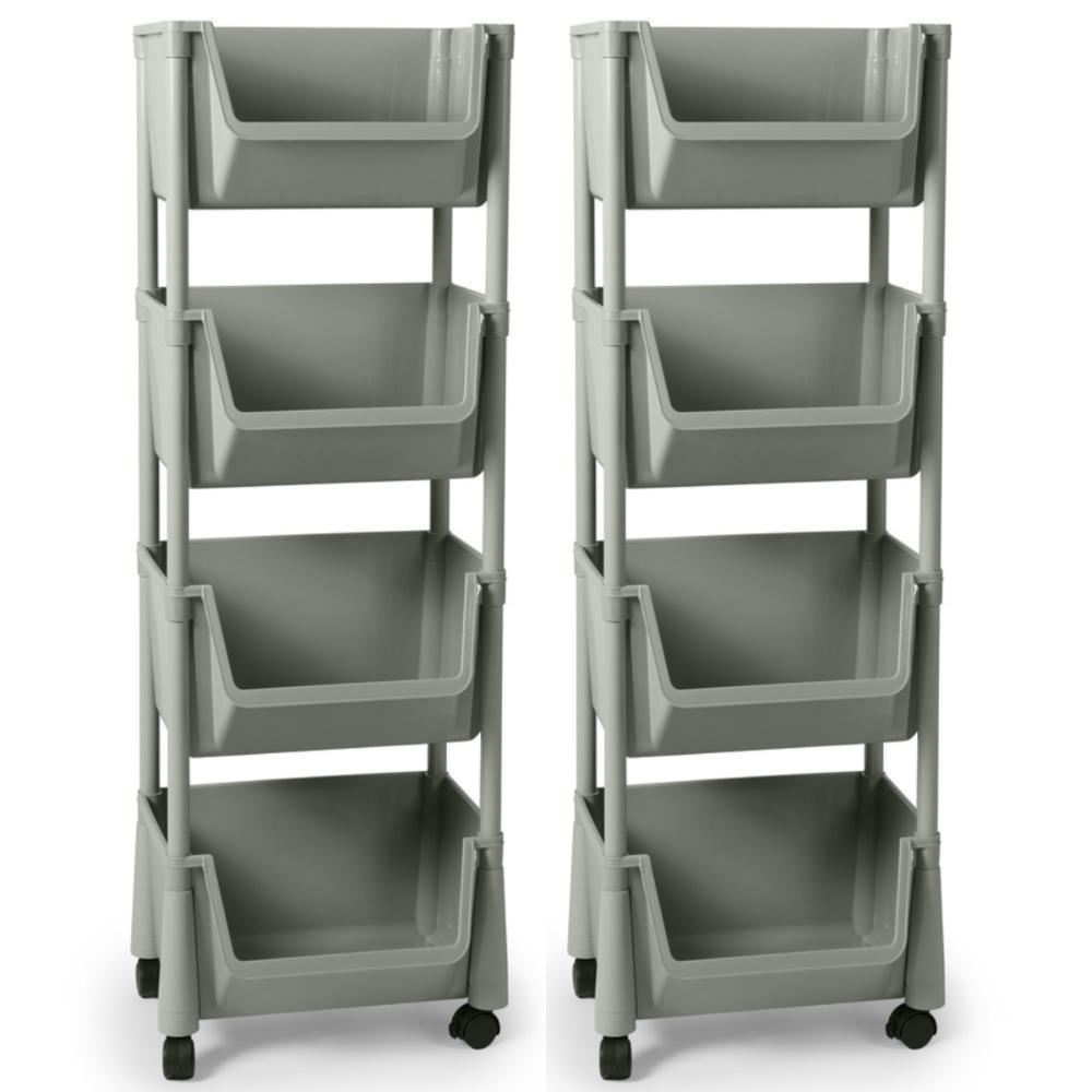 Kit 2 Carrinho Multiuso 4 Prateleiras Em Plástico Com Rodízio - Cinza
