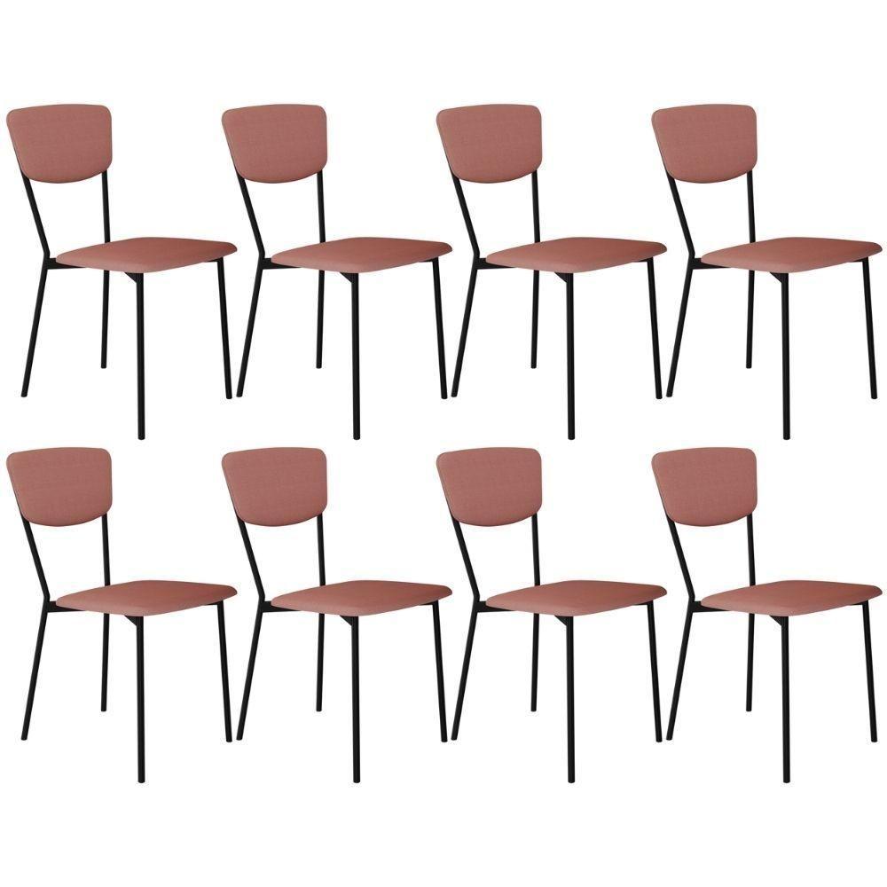 Kit 08 Cadeira Para Sala De Jantar Village Preto C01 Linho Rosê - Lyam Decor