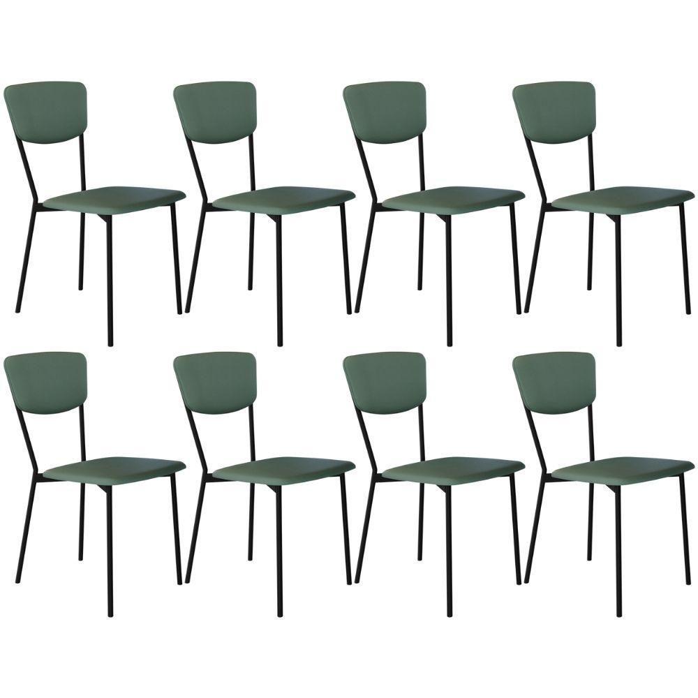 Kit 08 Cadeira Para Sala De Jantar Village Preto C01 Courino Verde Sálvia - Lyam Decor