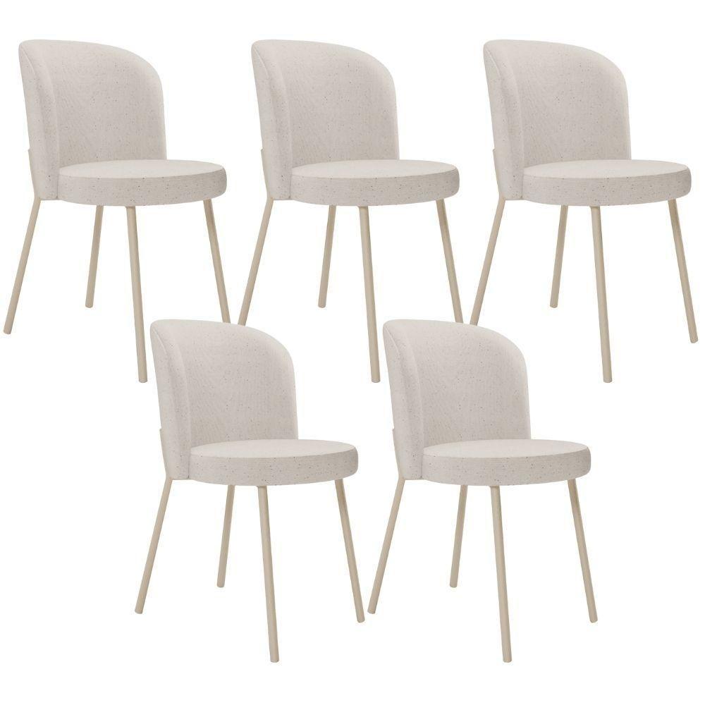 Kit 5 Cadeiras Sala De Jantar Estofada Gavi Arena L02 Linho Cru Lyam Decor