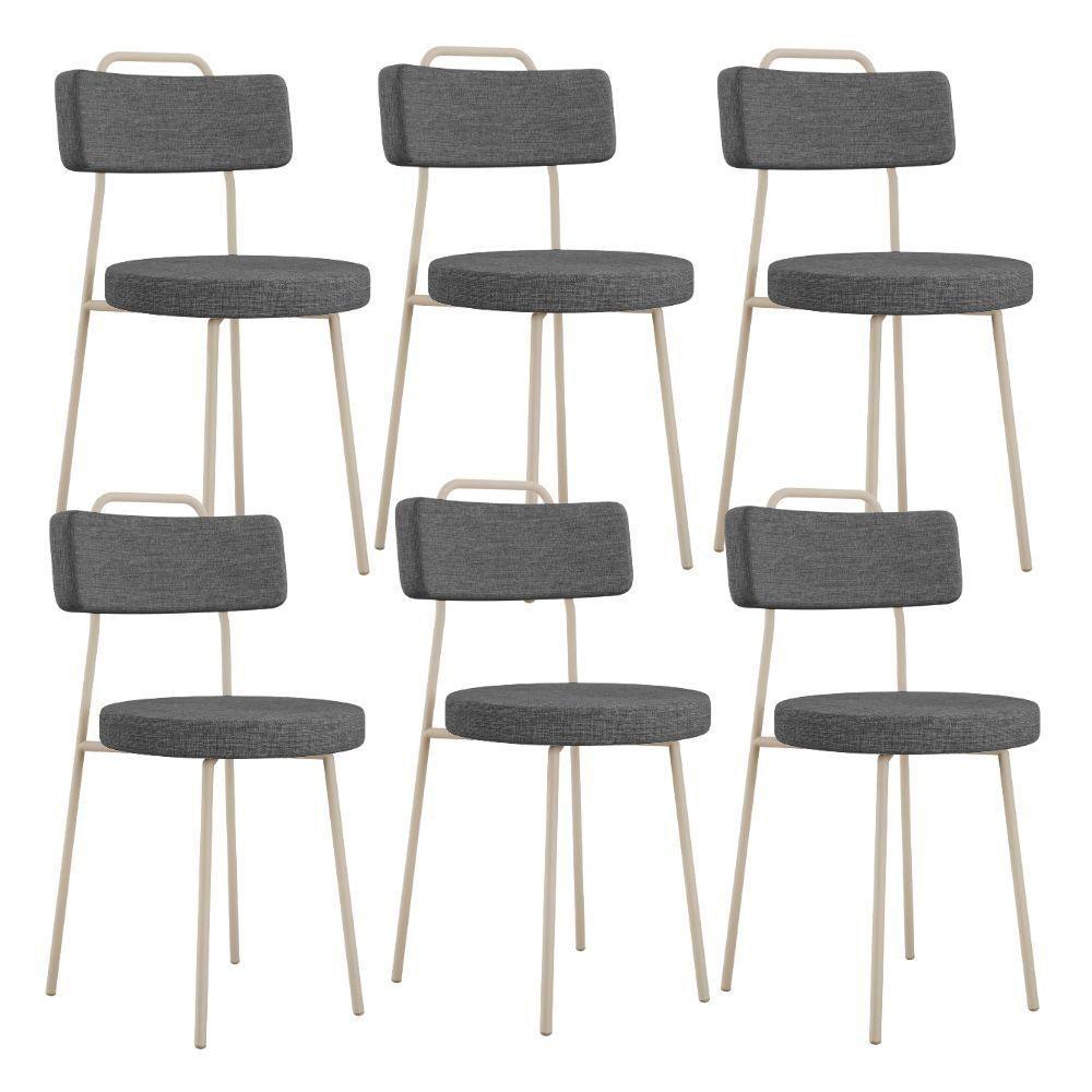 Kit 06 Cadeiras Decorativas Estofada Sala Jantar Barcelona Arena L02 Linho Cinza Escuro - Lyam