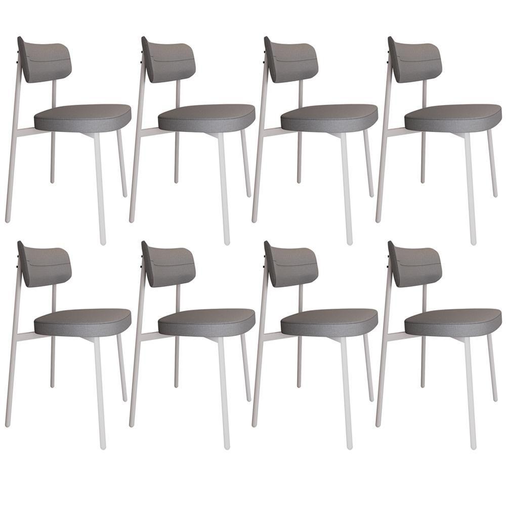 Kit 08 Cadeiras Estofada Para Sala De Jantar Astrid Branco C01 Linho Cinza - Lyam Decor