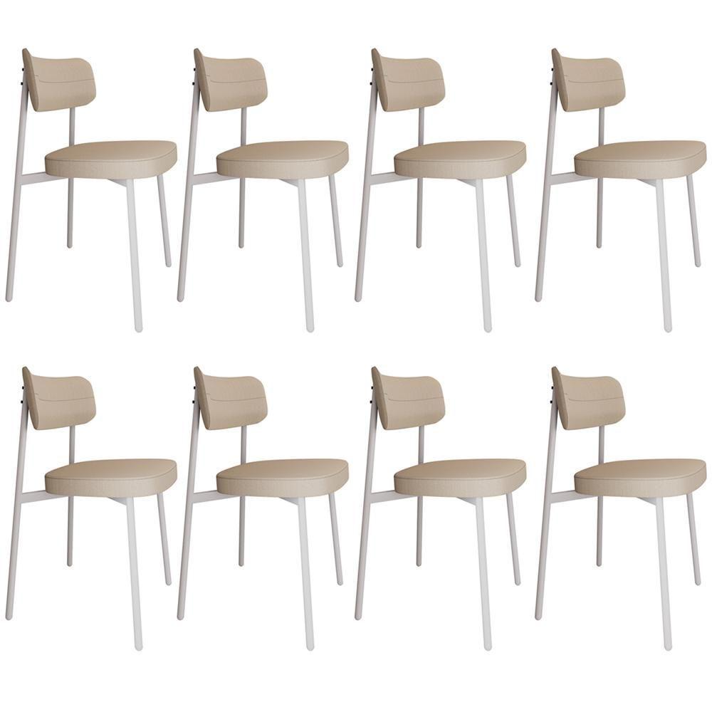 Kit 08 Cadeiras Estofada Para Sala De Jantar Astrid Branco C01 Linho Areia - Lyam Decor