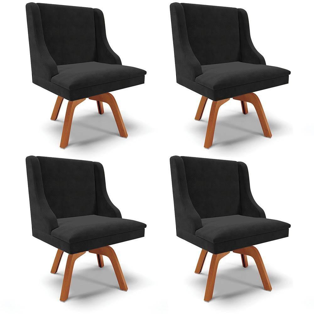 Kit 4 Cadeiras Estofadas Giratória Para Sala De Jantar Lia Suede Preto - Ibiza