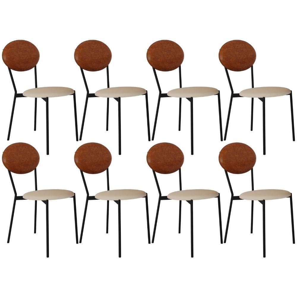 Kit 08 Cadeiras Estofada Para Sala De Jantar Azuri Preto C01 Linho Areia Courino Caramelo - Lyam Decor