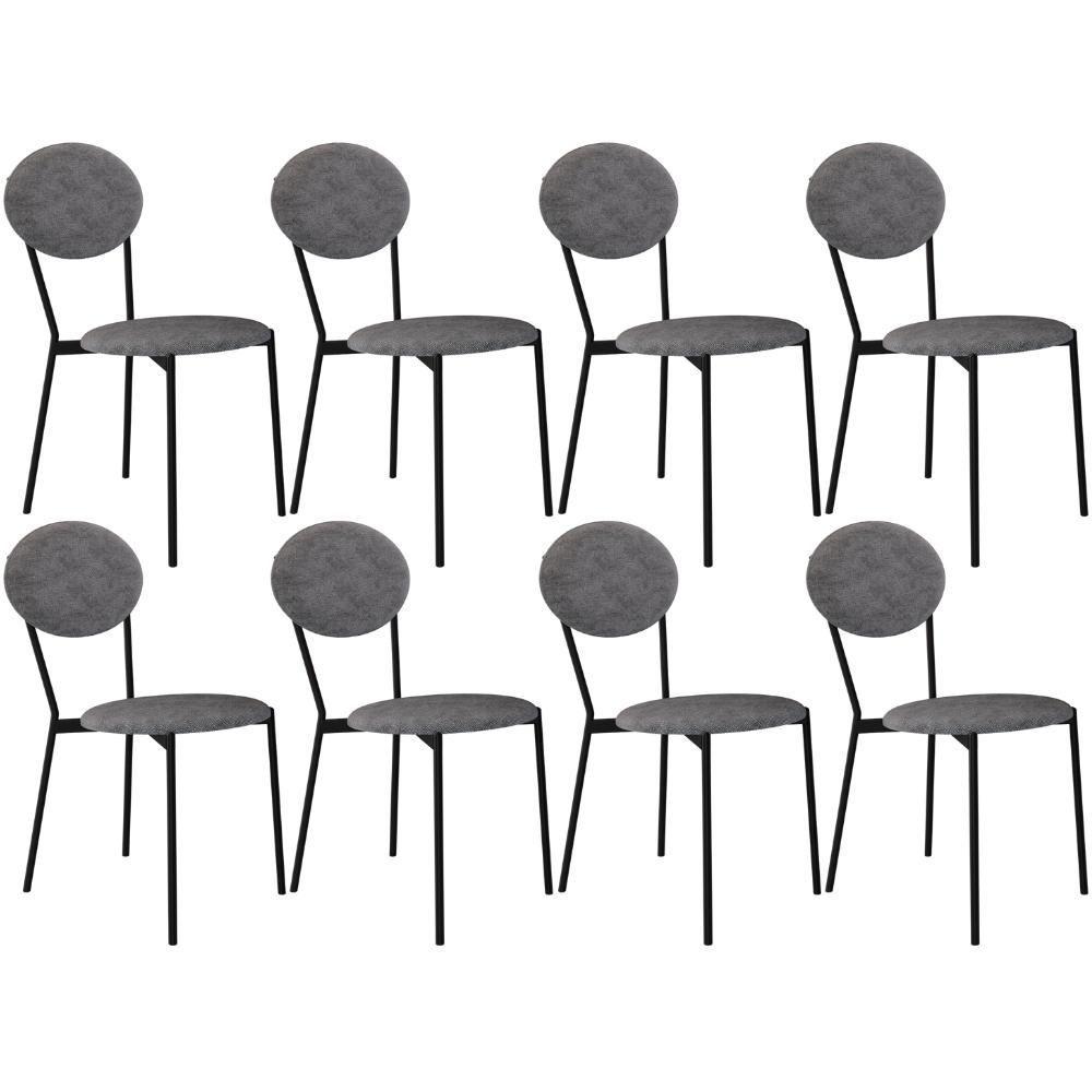 Kit 08 Cadeiras Estofada Para Sala De Jantar Azuri Preto C01 Linho Prata - Lyam Decor