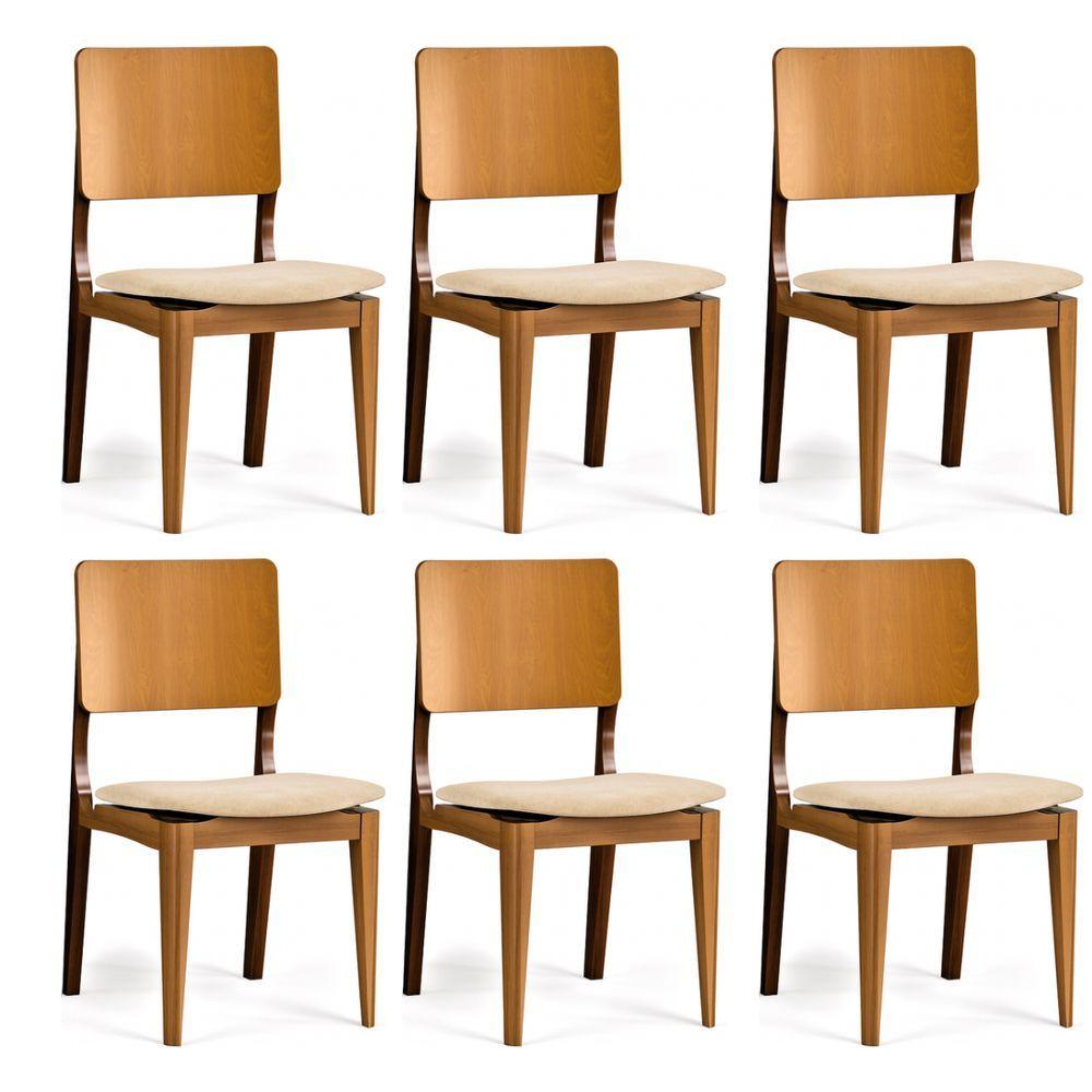 Kit Com 8 Cadeiras Turmalina Encosto Laminado Madeira Maciça Mel Veludo Bege