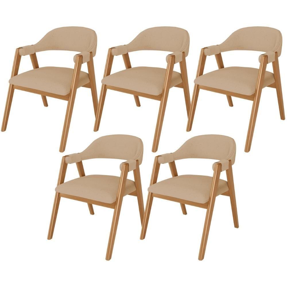 Kit 05 Cadeiras De Jantar E Estar Living Estofada Nadja L02 Linho Bege - Lyam Decor