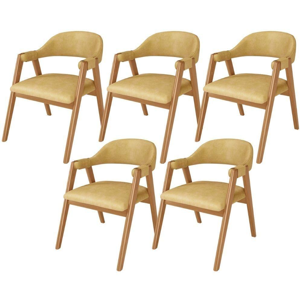Kit 05 Cadeiras De Jantar E Estar Living Estofada Nadja L02 Bouclê Mostarda - Lyam Decor