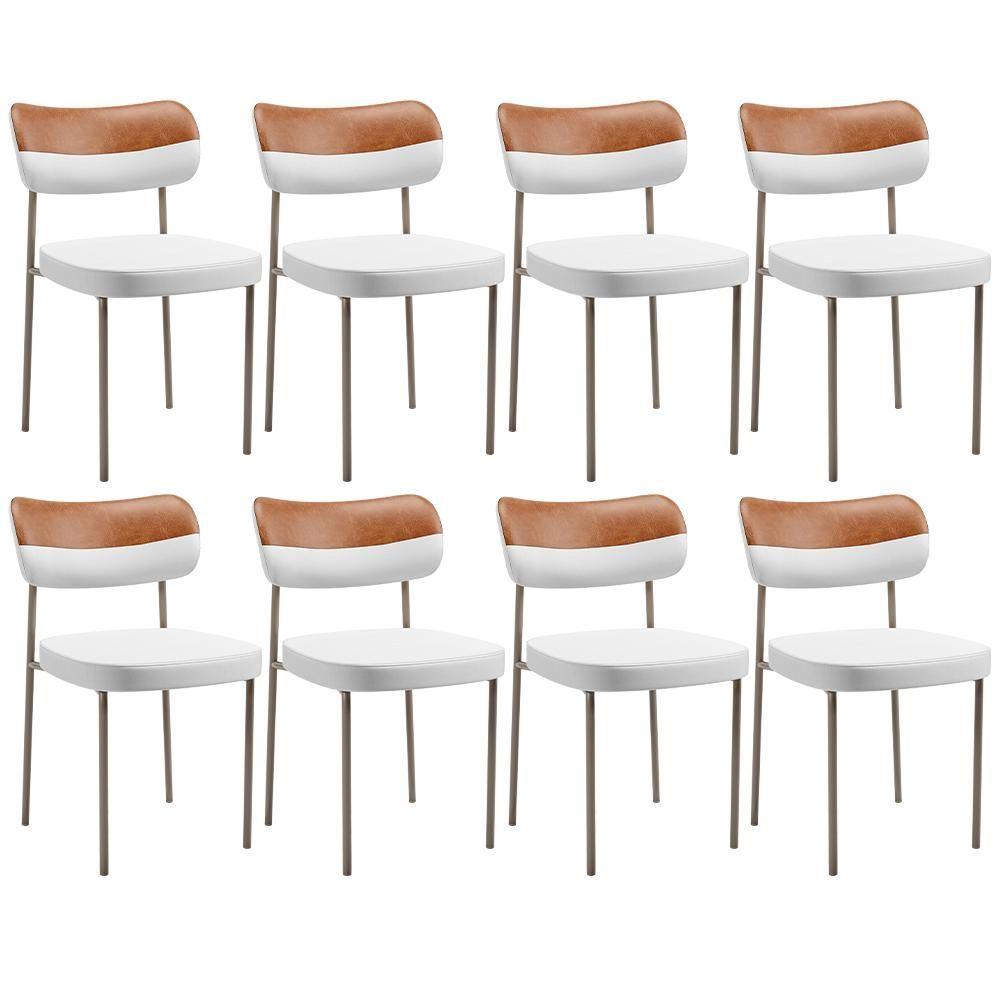 Kit 08 Cadeiras Decorativa Para Sala De Jantar Melina Base Arena L02 Faixa Couríssimo Camel Facto Branco