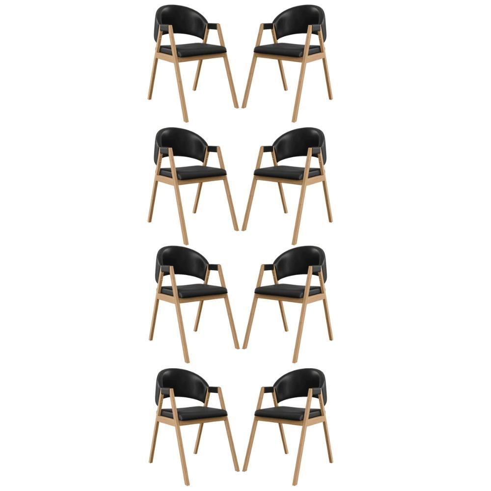 Kit 8 Cadeiras Estofadas Base Fixa De Madeira Preto Lia Sintético Premium Nozes - Ibiza
