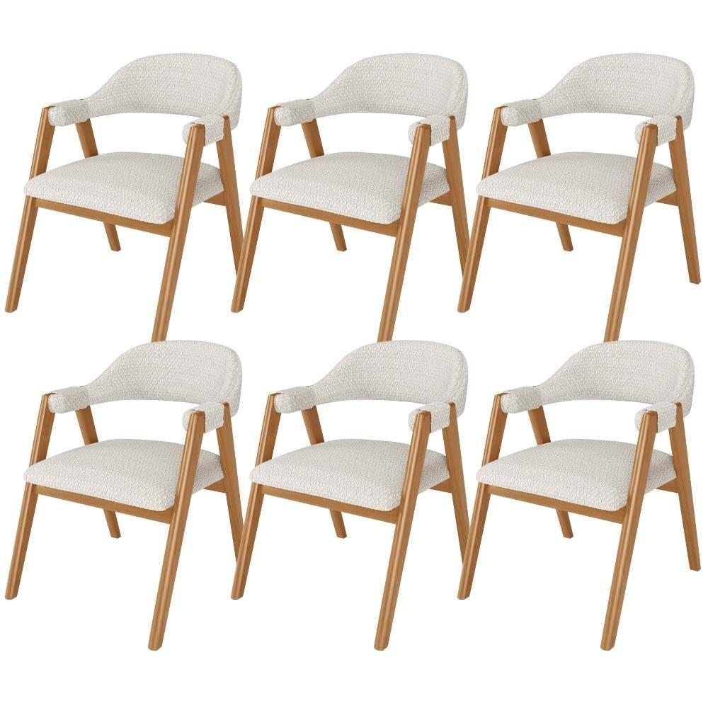 Kit 06 Cadeiras De Jantar E Estar Living Estofada Nadja L02 Bouclê Cru - Lyam Decor