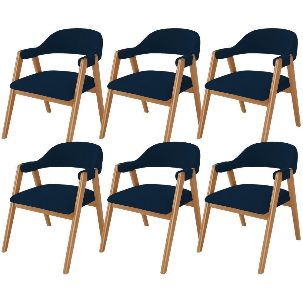 Kit 06 Cadeiras De Jantar E Estar Living Estofada Nadja L02 Suede Azul Marinho - Lyam Decor