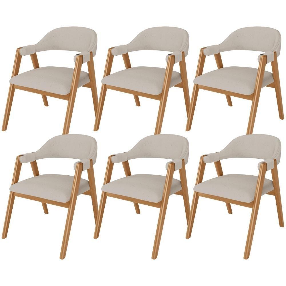 Kit 06 Cadeiras De Jantar E Estar Living Estofada Nadja L02 Linho Bege - Lyam Decor
