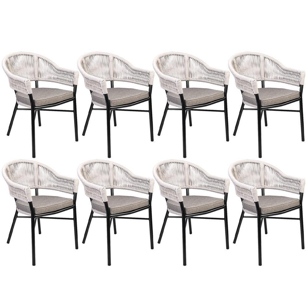 Kit 08 Cadeiras Decorativas área Gourmet Base Grafite Corda Náutica Medan R01 Amêndoa