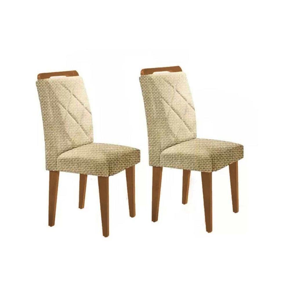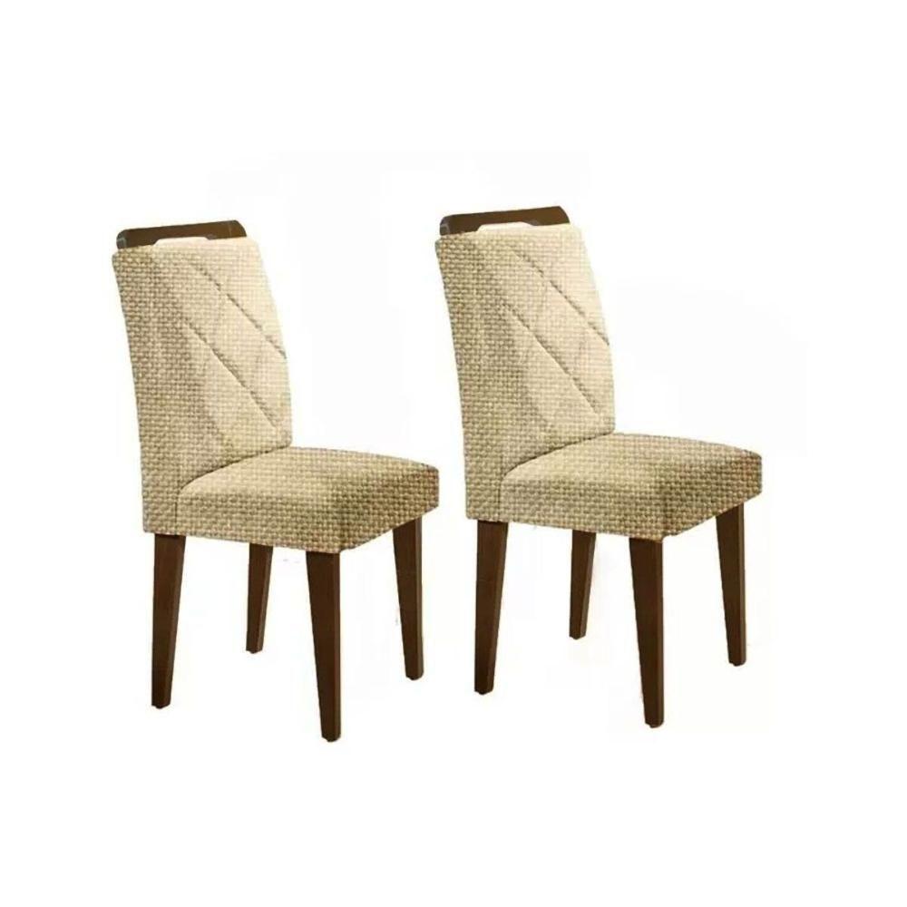 Kit 2 Cadeiras Sala Jantar Melissa 2 Un Madeira Capuccino Linho Bege Turim Rufato