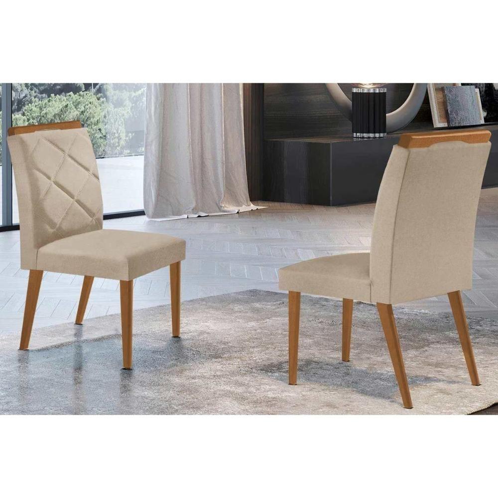 Kit 2 Cadeiras Sala Jantar Melissa 2 Un Madeira Capuccino Suede Creme Rufato
