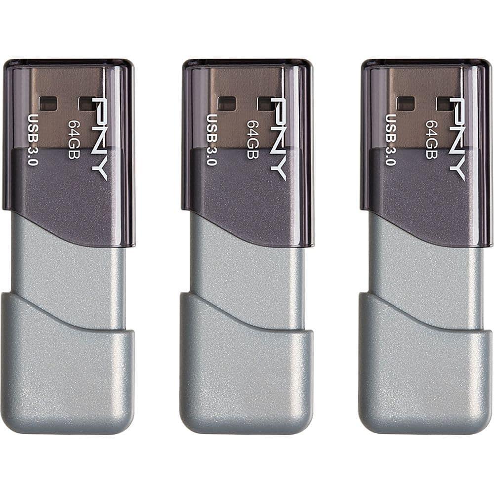 Pen Drive PNY - Turbo Attaché 3 64 GB USB 3.0 Tipo A Flash Drive, pacote com 3 - Prata-P-FD64GX3TBOP-MP