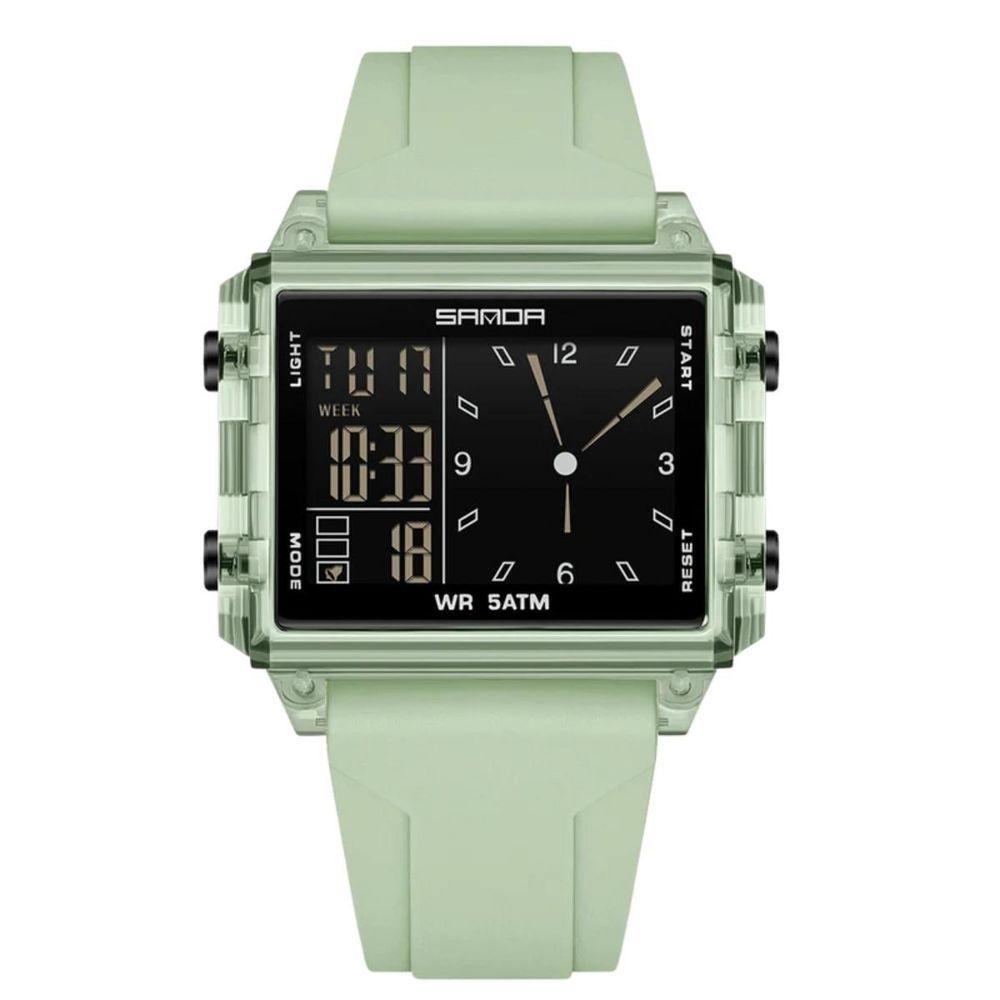 Relógio Analógico Digital 6273 Luminoso À Prova Da Água Sanda Verde