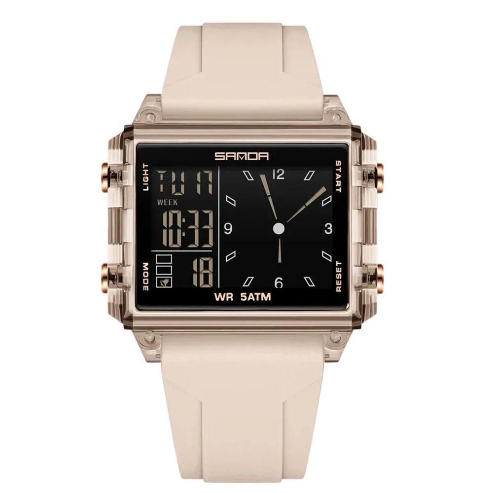 Relógio Analógico Digital 6273 Luminoso À Prova Da Água Sanda Bege