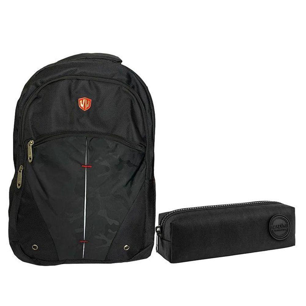 Kit Mochila Escolar Notebook Sbfp-6207 E Estojo Académie Preto - Fuseco
