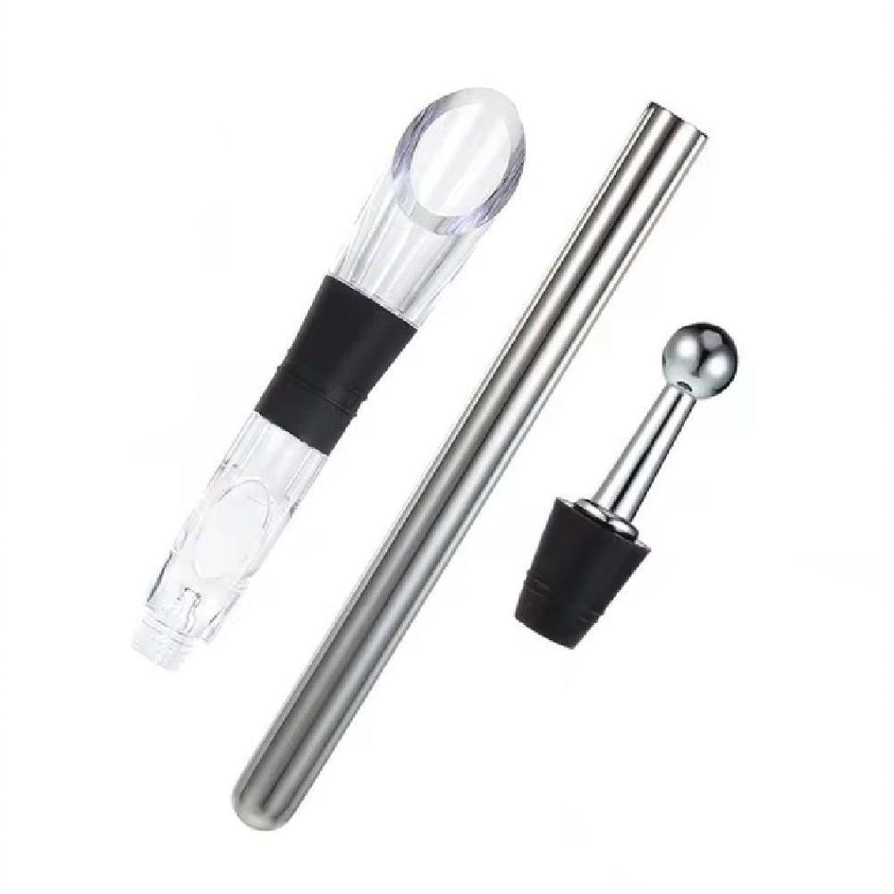 Kit Bastao Resfriador De Vinho E Bico Dosador Aerador Para Garrafa Decantador Em Inox Luxo