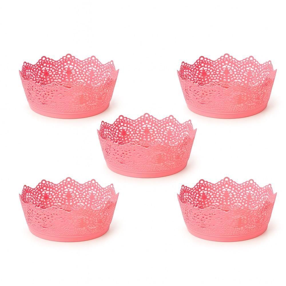 Kit 5 Cestos Organizadores Redondos Telados 21cm Organização Cozinha Sala Closet Penteadeira Rosa